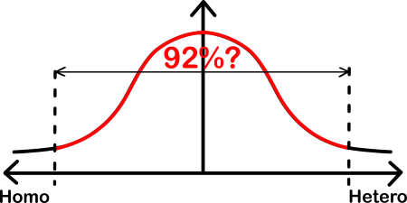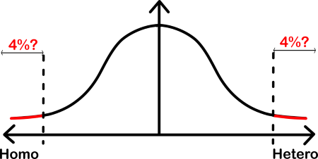 A tak mnoho homosexuálů žije v hetero-vztazích kvůli dětem nebo kvůli tlaku společnosti. Mnozí (řekla bych, že většina) si svou orientaci neuvědomují. Řada z těchto lidí je dokonce otevřeně homofobní (nejradikálnější homofobové se obvykle rodí z popřených homosexuálů, neb právě pro ně je uznání homosexuality největší hrozbou). Je otázkou, do jaké míry toto sebe-popírání přispívá k vysoké rozvodovosti, neb gay s lesbou (jak se často párují) spolu nemohou být ve vztahu nikdy úplně šťastní a naplnění. Můžou být maximálně jakž takž v pohodě, pokud jsou blízko středu Gausovy křivky, nebo se umí dobře popírat a potlačovat své pocity. Totéž bude samozřejmě platit pro dvojice heterosexuál + lesba nebo heterosexuálka + gay. Z jedné strany to bude vždy pokulhávat a budou tím trpět obě strany.