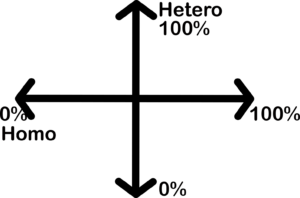 V zásadě to nepopírá výše uvedené teze, jen míra homo a heterosexuality v jednom člověku by dohromady nemusela dávat 100%, ale i méně nebo více. Ten správný graf pro určení své orientace by pak mohl vypadat třeba takto: